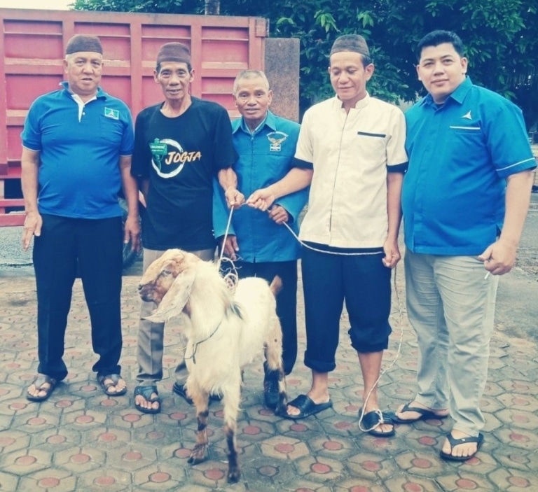 Hewan kurban tersebut diserahkan oleh Wakil Ketua DPC Partai Demokrat Bangka Selatan Bahroni didampingi oleh Ketua PAC Partai Demokrat Toboali Sudaryono dan Fungsionaris Partai Mustar.